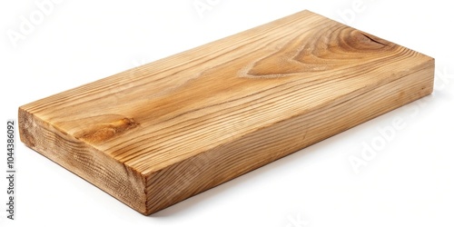 Rectangular piece of wood with a natural texture pattern, isolated tilted angle