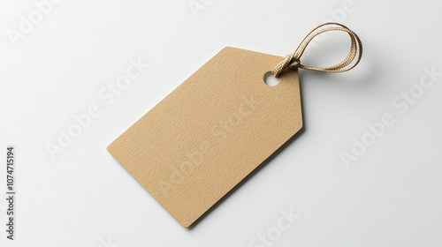 Rectangular Tag with Ribbon Like Finish and Secure Loop Positioned Against a Minimalist White Background Perfect for Labeling Branding and Organizational Purposes