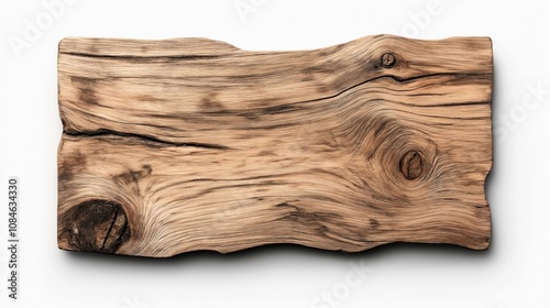 Rectangular wooden slab with distinct natural grain patterns and knots on a white background
