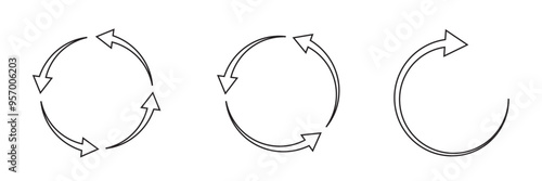 Recycle. Recycle vector icon. Recycle symbol icon. Circle Arrow icon set vector illustration, refresh, reload, Set of circle arrows rotating, different circular arrows of black color isolated, recycle