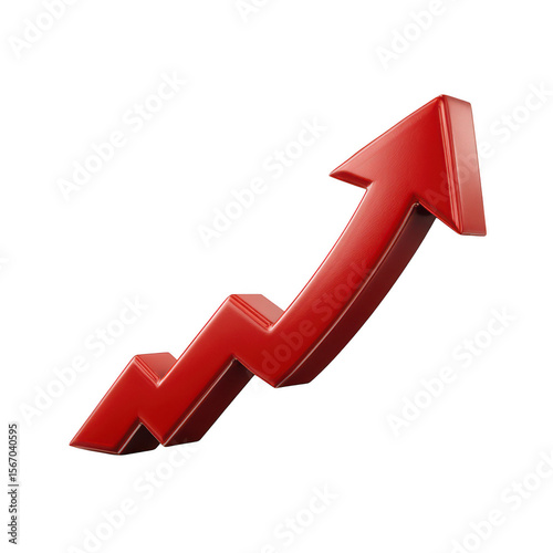 Red 3d arrow graph showing upward trend isolated on transparent background
