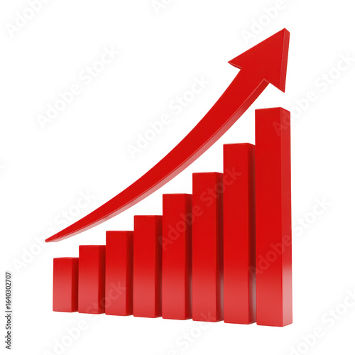 Red 3d bar chart with upward trend arrow isolated on transparent background