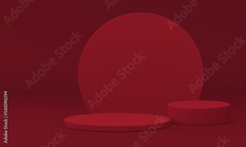 Red 3d pedestal showcase round stage event celebration product presentation realistic vector