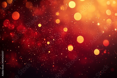 Red abstract background. Glowing background with golden dust, sparkles, shimmer, particles. New year mockup for celebrating