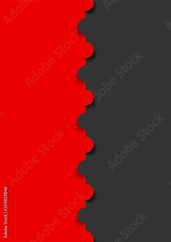 Red and black minimal flat background with paper circles. Abstract geometric vector design