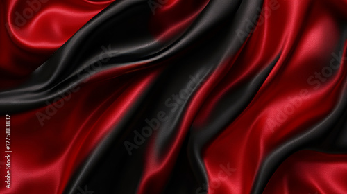 Red and black silk folded fabric backgrounds, luxurious textile decoration backdrop for poster, banner or cover design. Drapery material with soft satin waves, poster, 3d vector realistic illustration