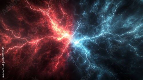 Red and Blue Electrical Storm - Abstract Lightning Colliding Background
