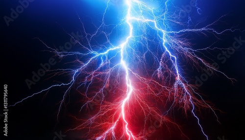 赤色の稲光と青い色の稲光(red and blue lightning)