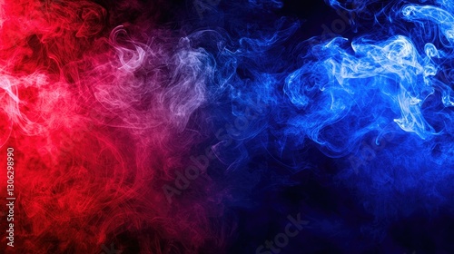 Red and blue smoke swirls, dark background, abstract art, design element (13)