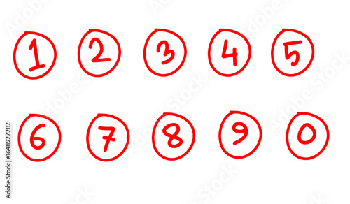 Red and drawn numbers 1,2,3,4 5 6,7,8,9,0. Bold hand drawn doodle style number for highlights and emphasize. Numeric digits isolated on transparent png