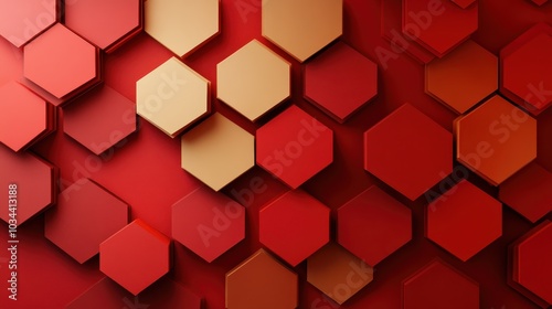 Red and gold hexagons overlap to form an abstract layout, evoking a sense of dynamic energy and modern style, suitable for any digital art collection.