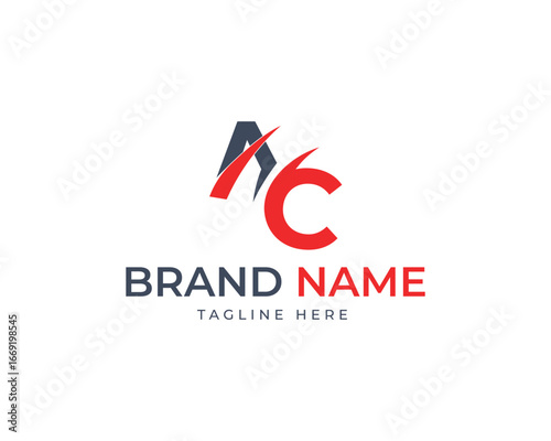 Red and Gray AC Monogram Logo with Swoosh Brand Name Tagline AC logo lettermark