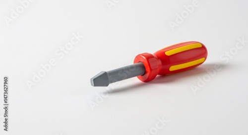 Red and gray plastic screwdriver rests neatly on white background softly lit. AI Generated