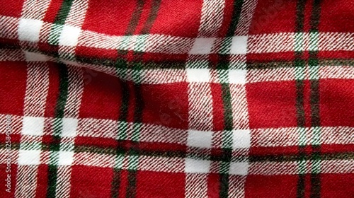 Red and Green Plaid Fabric Texture with White Pattern Lines