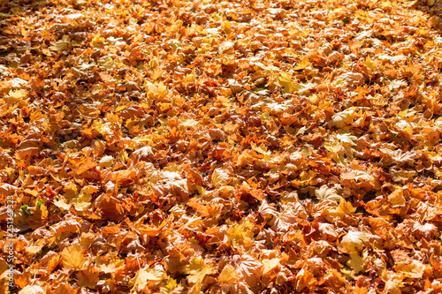 Red and Orange Autumn Leaves Background, Golden autumn in warm colors
