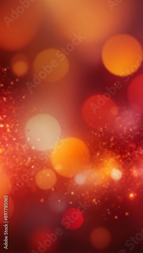 Red and orange bokeh lights create an abstract, blurred background with copy space, christmas mood