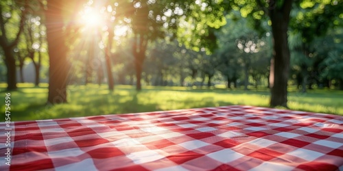 Red and White Checkered Picnic Blanket in a Sunny Park