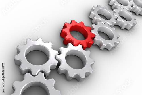 Red and white cogs and wheels