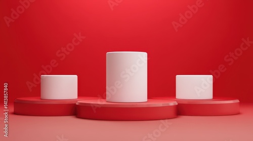 Red and White Cylindrical Product Display Stand Mockup Minimalist Design for Advertising