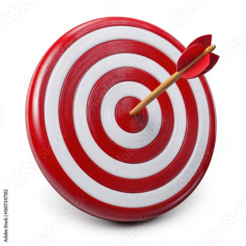 Red and white dartboard with arrow hit in the center isolated on white background
