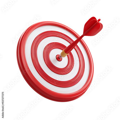 Red and white dartboard with dart in bullseye isolated on transparent background