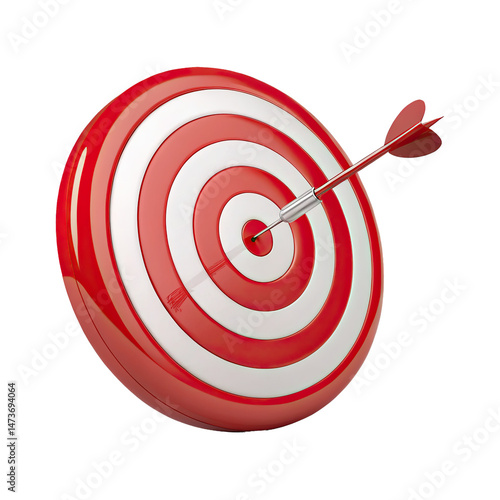 Red and white dartboard with dart in the bullseye isolated on transparent background, successful shot in the darts target,target goal with arrow isolated,3D Red Dartboard Target Bullseye,Bright red,Ai