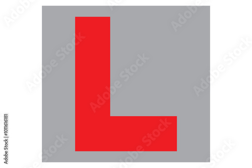Red and white L plate learner driver sign used in the USA and UK for new drivers to display on their car vector