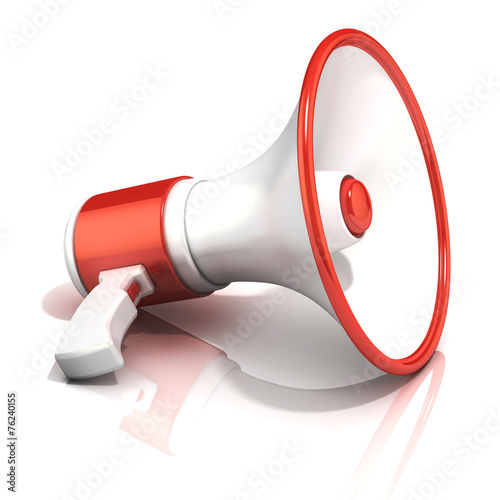 Red and white megaphone, 3D rendering, isolated on white
