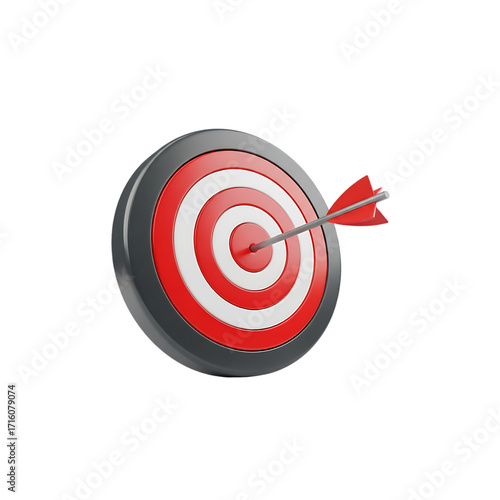 Red and white target bullseye with arrow hitting the center success achievement goal