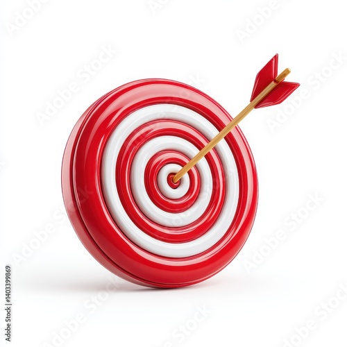 Red and white target with arrow hitting the bullseye. Concept for success, achievement, and goal.