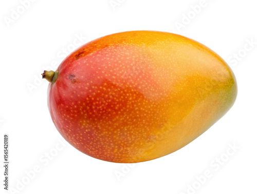 Red and yellow ripe mango isolated on transparent background showing vibrant tropical fruit color