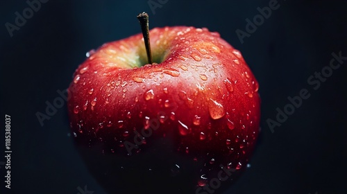 Red Apple with Water Drops: A Close-Up Macro Shot