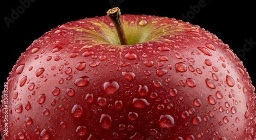 Red Apple with Water Drops on Black Background