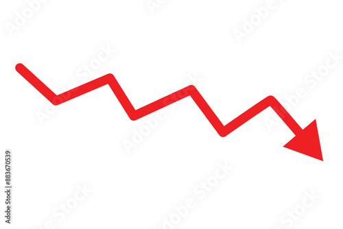 red arrow business graph going down represent loss. red arrow graph chart downtrend symbol. red Decline arrow vector.