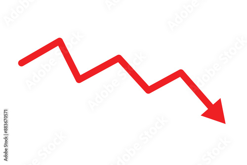 red arrow business graph going down represent loss. red arrow graph chart downtrend symbol. red Decline arrow vector.