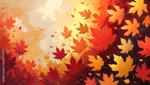 Red autumn leaves seamless background with colorful fall foliage pattern