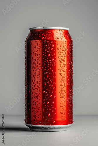 Red Beverage Can Standing on a White Background