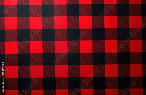 Red, black buffalo plaid seamless fabric texture. Classic checkered pattern ideal for fashion design, textiles. Bold, stylish material for clothing decorative items. High quality woven pattern. Use
