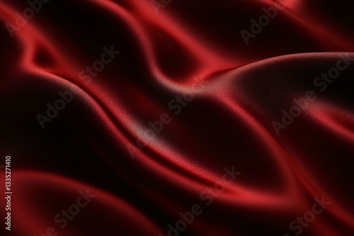 Red black elegant abstract background. Silk satin fabric with nice folds. Luxurious dark red background with wavy lines.