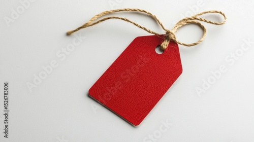 Red blank price tag with string on white background. Discount concept for sale. Promotion for shopping.