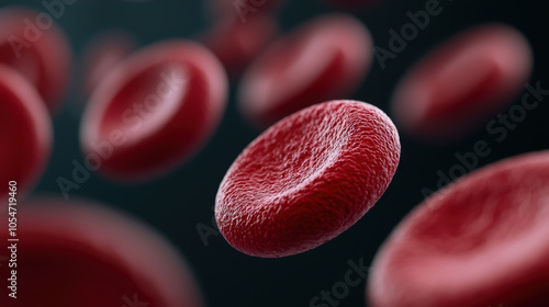 Red blood cells floating in dark background, showcasing their smooth, disc like shape and vibrant red color. image highlights essential role of these cells in oxygen transport