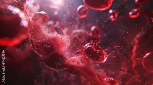Red blood cells flow through a blood vessel, carrying oxygen throughout the body.