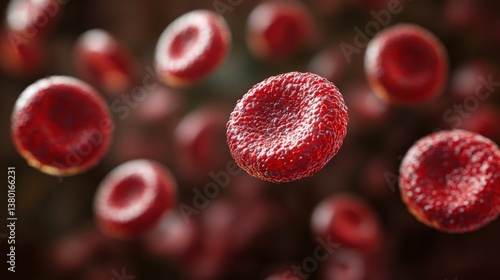 Red blood cells in microscopic view, exhibiting a detailed structure and dynamic movement.