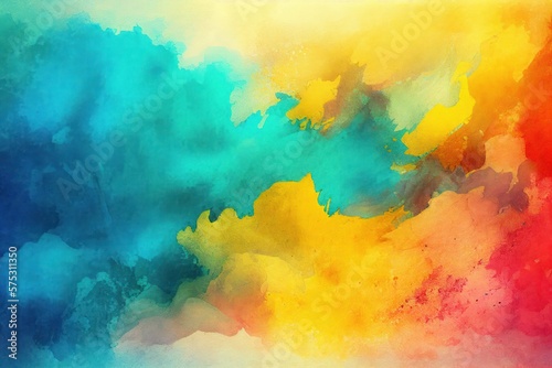 Red Blue Yellow Watercolor Background, Abstract Artistic Backdrop, Generative AI