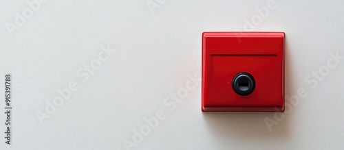 Red button warning light flasher for fire alarm on a white background Close up view of a plastic emergency fire alarm box mounted on a wall Light fire safety with copyspace