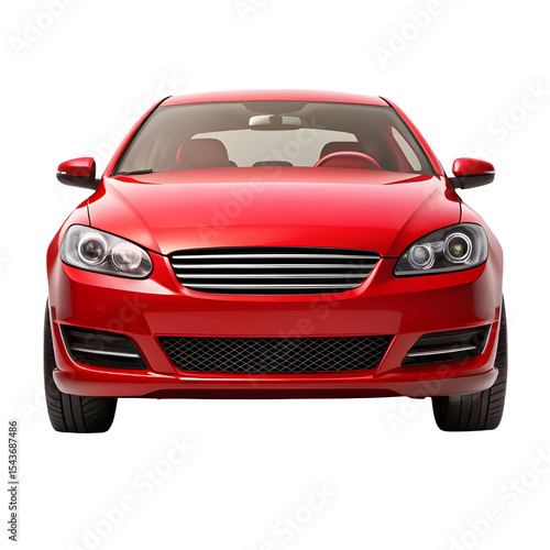 Red Car Front View – Bold and Sporty Vehicle Design on Pure White Background