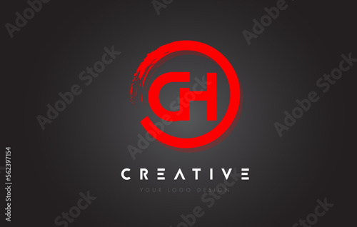 Red CH Circular Letter Logo with Circle Brush Design and Black Background.