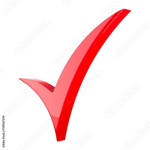 Red check mark, 3D rendering isolated on transparent background