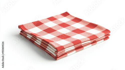 Red checkered napkin front view isolated on white background. Rustic chic style mockup perspective.