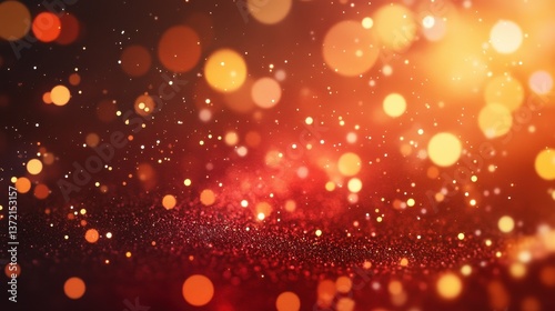 Red Christmas abstract background. Glowing background with golden dust, sparkles, shimmer, particles. New year mockup for celebrating. Generative ai illustration